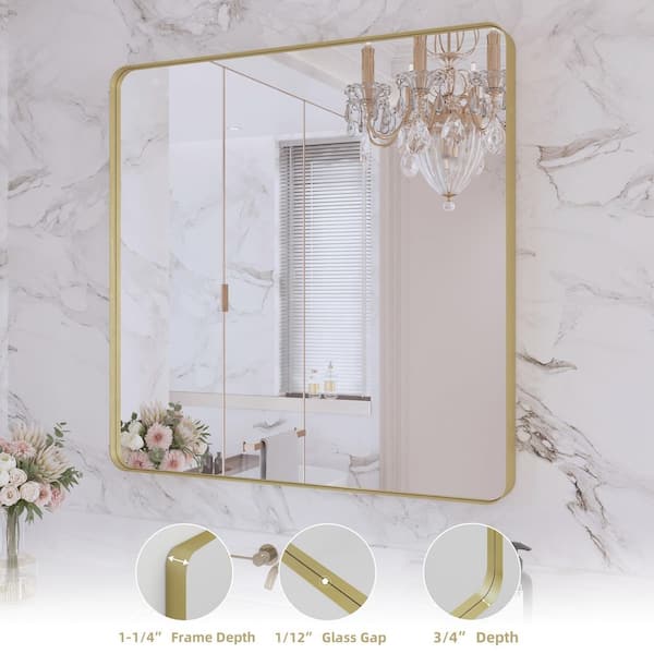 36 in. W x 36 in. H Square Framed Wall Mounted Bathroom Vanity Mirror in Brushed Gold