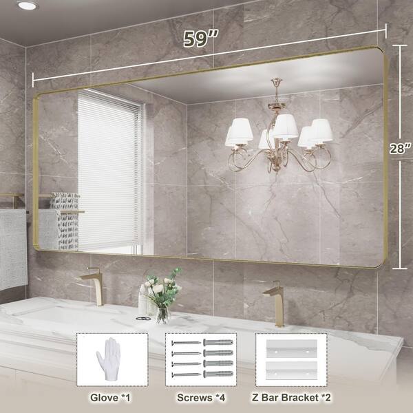59 in. W x 28 in. H Rectangular Framed Wall Mounted Bathroom Vanity Mirror in Brushed Gold