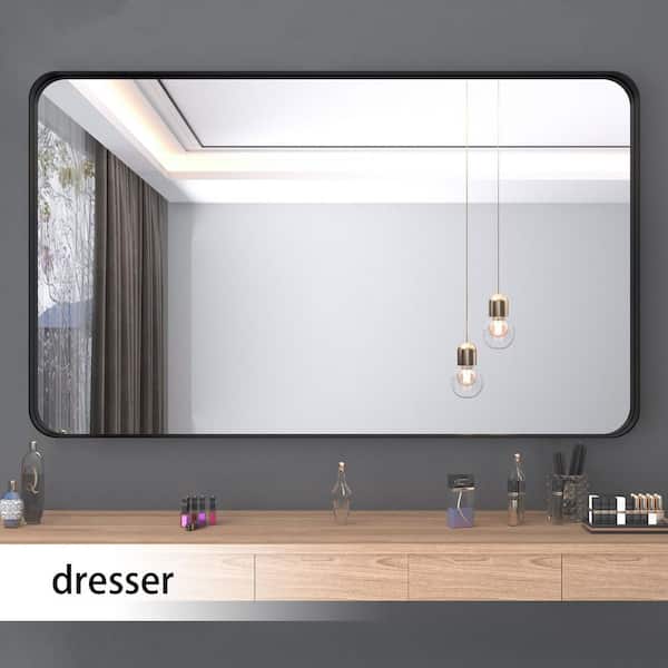 60 in. W x 36 in. H Large Rectangular Framed Wall Mounted Bathroom Vanity Mirror in Black