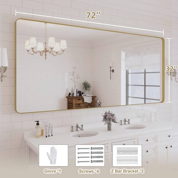 72 in. W x 32 in. H Large Rectangular Framed Wall Mounted Bathroom Vanity Mirror in Brushed Gold