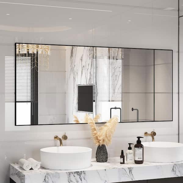 72 in. W x 32 in. H Rectangle Aluminum Alloy Framed Wall Mounted Bathroom Vanity Accent Mirror in Black