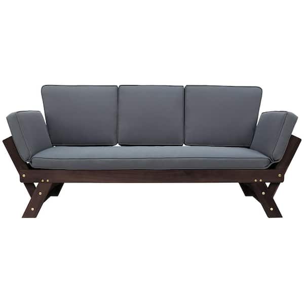 Klea 1-Piece Wood Outdoor Couch Sofa with Gray Cushions