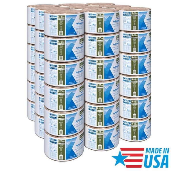 R15 Kraft Faced 15 in. x 18 ft. Fiberglass Insulation Rolls for 2x4 Wall - Sound-Reducing and Made in USA (27-Rolls)