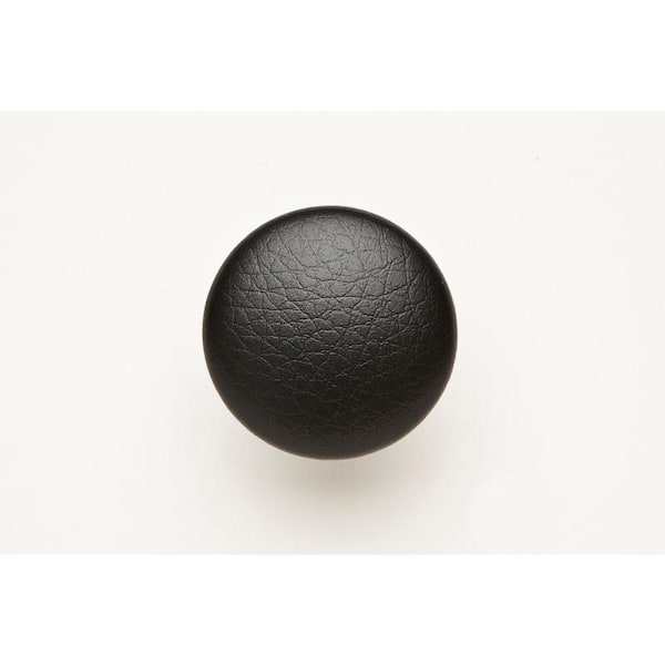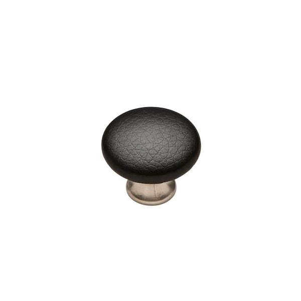 Black Sta Kleen Faux Leather Covered 1-1/8 in. Muted Nickel/Black Cabinet Knob