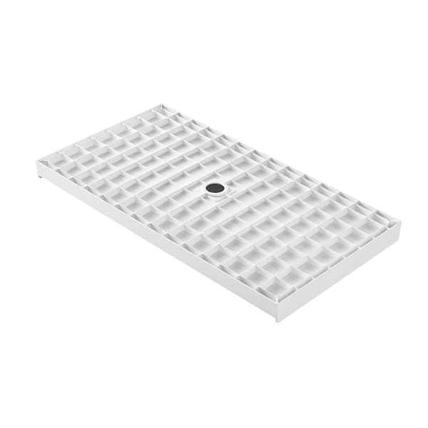 32 in. W x 60 in. L x 96 in. H 4-Pieces Alcove SMC Shower Kit with Surround and Base in Rock Pattern Center Drain