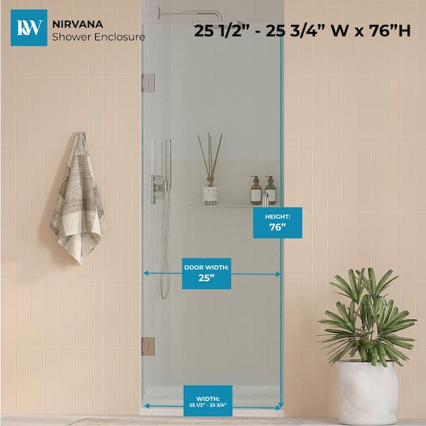 Nirvana 25.5 in. - 25.75 in. W x 76 in. H Frameless Pivot Hinged Shower Door in Chrome with 3/8 in. Clear Glass