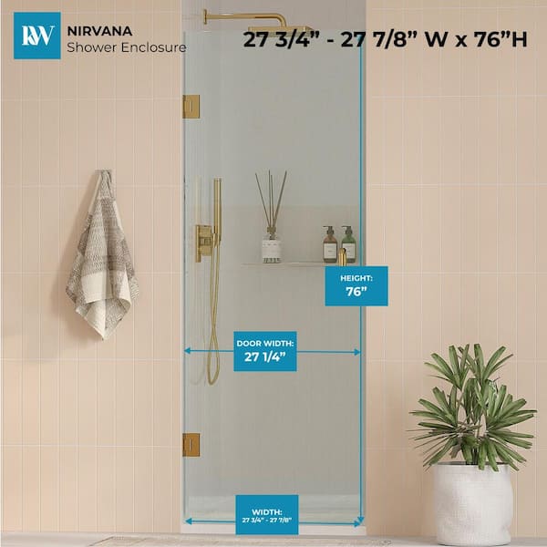 Nirvana 27.75 in. - 27.875 in. W x 76 in. H Frameless Hinged Shower Door in Brushed Gold with 3/8 in. Clear Glass (10mm)