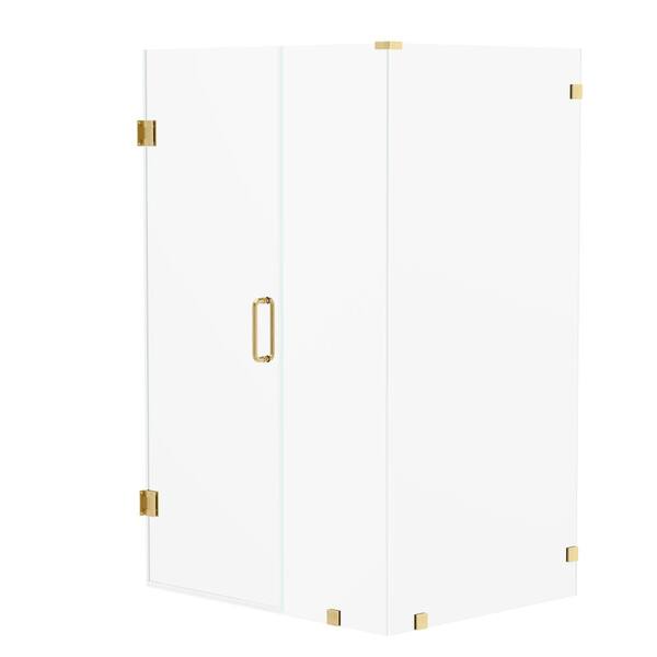 Nirvana 34 in. W x 38 in. L x 76 in. H Pivot Frameless Corner Shower Enclosure in Brushed Gold with 3/8 in. Clear Glass