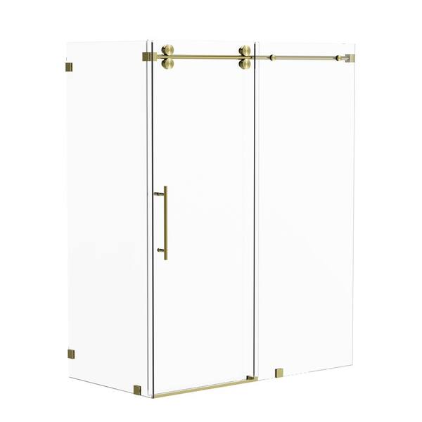 Radiance 48 in. W x 35 in. D x 76 in. H Sliding Frameless Corner Shower Enclosure in Brushed Gold with Clear Glass