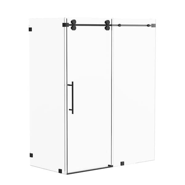 Radiance 48 in. W x 40 in. D x 76 in. H Sliding Frameless Corner Shower Enclosure in Matte Black with Clear Glass