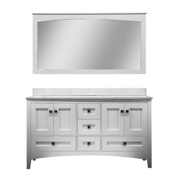 Caius 59 in. W x 34 in. H Vanity in White with Quartz Vanity Top in White with Crystal White Square Basin and Mirror