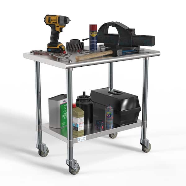 24 in. x 36 in. Stainless Steel Kitchen Utility Table with Casters