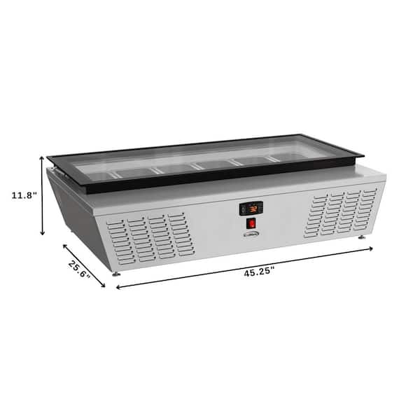 45 in. 3.5 cu. ft. 6-Pan Countertop Ice Cream Display Auto / Cycle Defrost Upright Freezer with Glass Top in Stainless