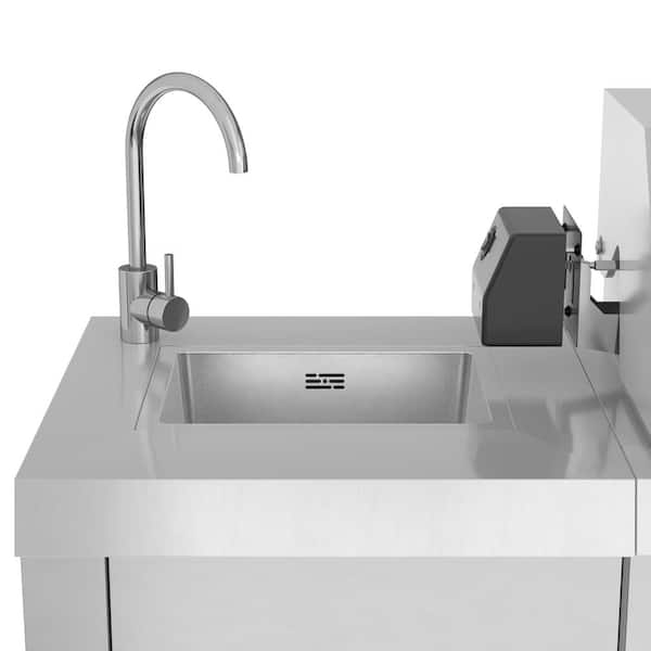 Reserve Outdoor Kitchen Island with 6 Burners, Sink, Storage Cabinet, and Refrigerator in Stainless Steel, 103x25x47.6