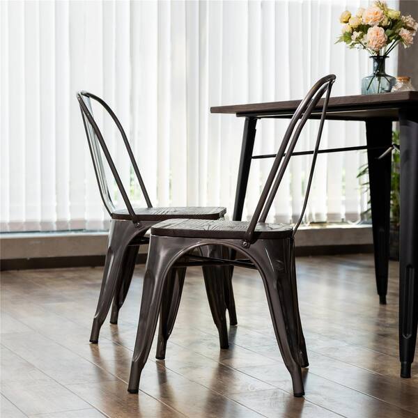 Kricox Silver Metal Tolix Style Stackable Side Chairs With Solid Wood Seat (Set of 2)