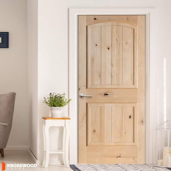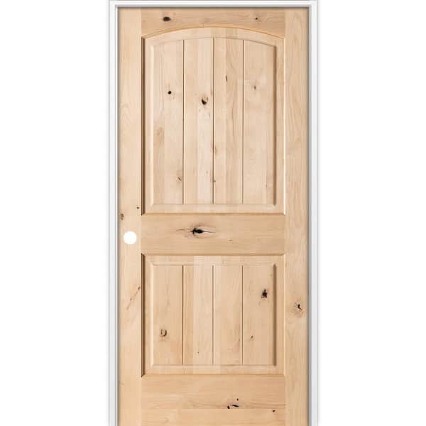 18 in. x 80 in. Rustic 2-Panel Arch Top VG Right-Hand Unfinished Knotty Alder Wood Single Prehung Interior Door
