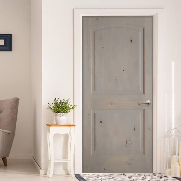 18 in. x 80 in. Rustic Knotty Alder 2-Panel Left Handed Clear Stain Wood Single Prehung Interior Door with Arch Top