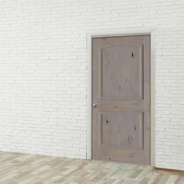 18 in. x 80 in. Rustic Knotty Alder 2-Panel Right Handed Grey Stain Wood Single Prehung Interior Door w/Arch Top