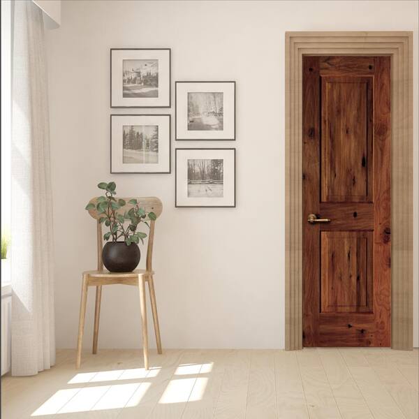 18 in. x 80 in. Rustic Knotty Alder Wood 2-Panel Square Top Right-Hand/Inswing Black Stain Single Prehung Interior Door