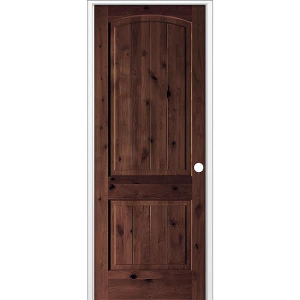 18 in. x 96 in. Rustic 2-Panel Arch Top VG Left-Hand Red Mahogany Stain Knotty Alder Wood Single Prehung Interior Door