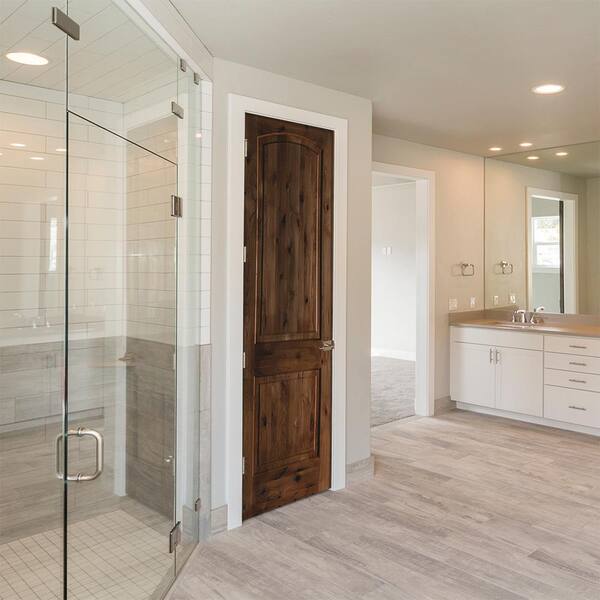 18 in. x 96 in. Rustic Knotty Alder 2 Panel Top Rail Arch Solid Wood Right-Hand Single Prehung Interior Door