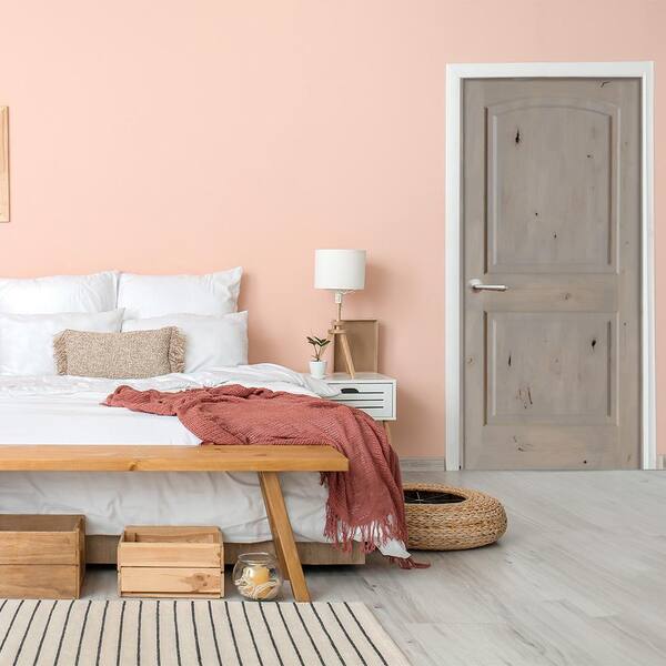 24 in. x 80 in. Knotty Alder 2-Panel Right-Handed Grey Stain Wood Single Prehung Interior Door with Arch Top