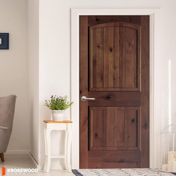 24 in. x 80 in. Rustic 2-Panel Arch Top VG Right-Hand Red Mahogany Stain Knotty Alder Wood Single Prehung Interior Door