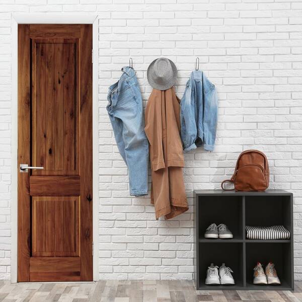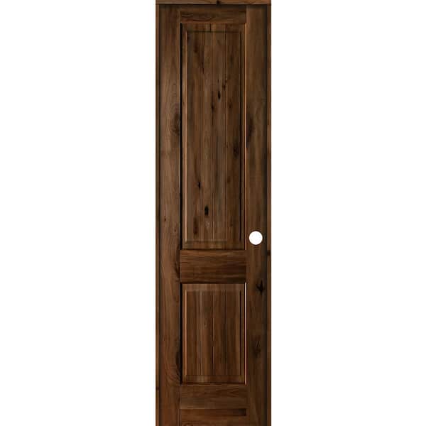 24 in. x 96 in. Knotty Alder 2 Panel Left-Hand Square Top V-Groove Provincial Stain Wood Single Prehung Interior Door