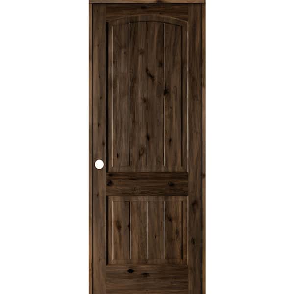 24 in. x 96 in. Knotty Alder 2 Panel Right-Hand Top Rail Arch V-Groove Black Stain Wood Single Prehung Interior Door