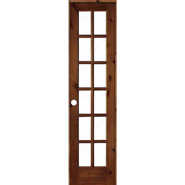 24 in. x 96 in. Rustic Knotty Alder 12-Lite Right-Hand Clear Glass Red Chestnut Stain Wood Single Prehung Interior Door