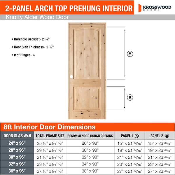 24 in. x 96 in. Rustic Knotty Alder 2-Panel Left Handed Black Stain Wood Single Prehung Interior Door with Arch Top