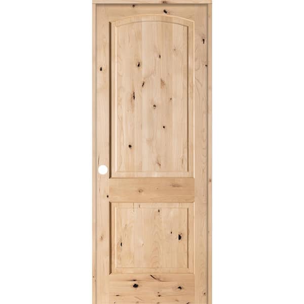 24 in. x 96 in. Rustic Knotty Alder 2 Panel Top Rail Arch Solid Wood Right-Hand Single Prehung Interior Door