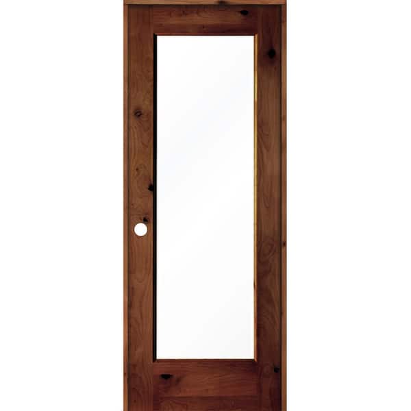 28 in. x 80 in. Knotty Alder Right-Hand Full-Lite Clear Glass Red Chestnut Stain Wood Single Prehung Interior Door