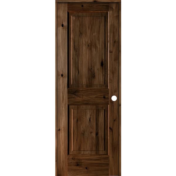 28 in. x 80 in. Rustic Knotty Alder 2 Panel Left-Handed Provincial Stain Wood Single Prehung Interior Door w/Square Top