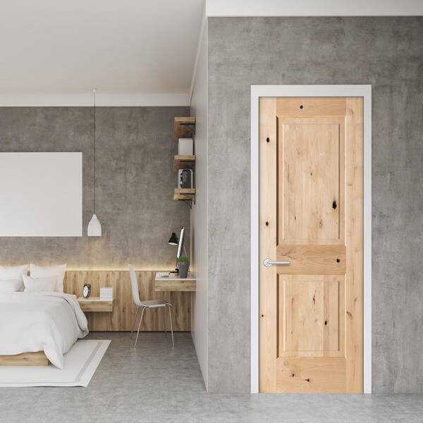 28 in. x 80 in. Rustic Knotty Alder Wood 2 Panel Right-Hand/Inswing Provincial Stain Single Prehung Interior Door