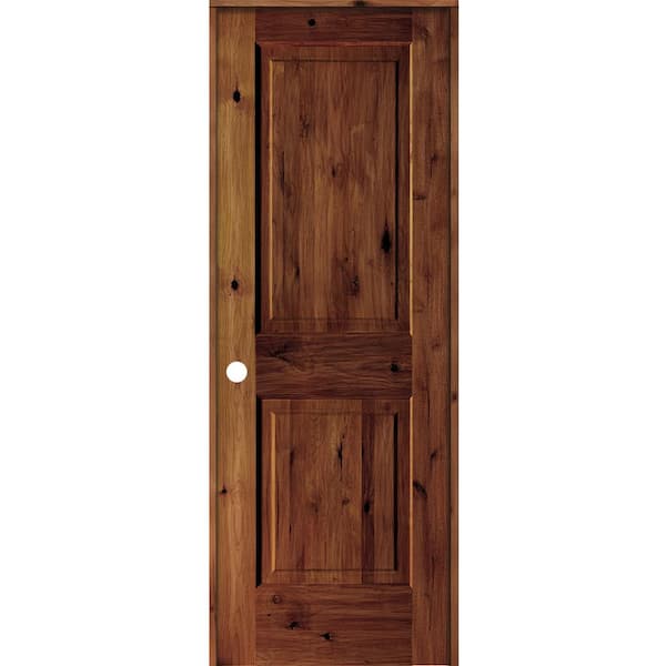 28 in. x 80 in. Rustic Knotty Alder Wood 2 Panel Right-Hand/Inswing Red Chestnut Stain Single Prehung Interior Door