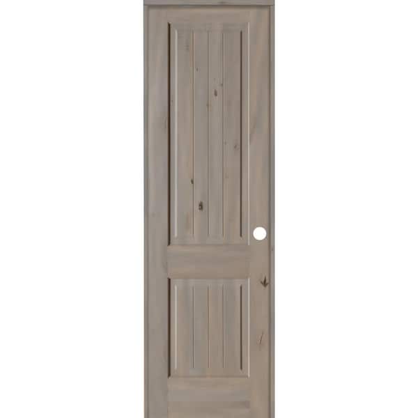 28 in. x 96 in. Knotty Alder 2 Panel Left-Hand Square Top V-Groove Grey Stain Solid Wood Single Prehung Interior Door