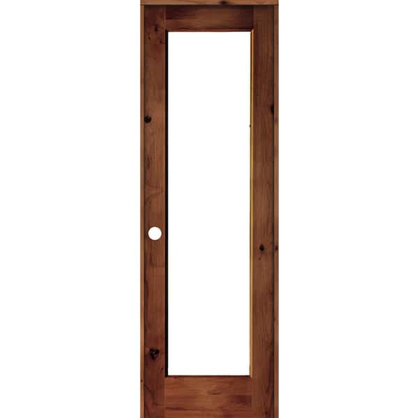 28 in. x 96 in. Knotty Alder Right-Hand Full-Lite Clear Glass Red Chestnut Stain Wood Single Prehung Interior Door