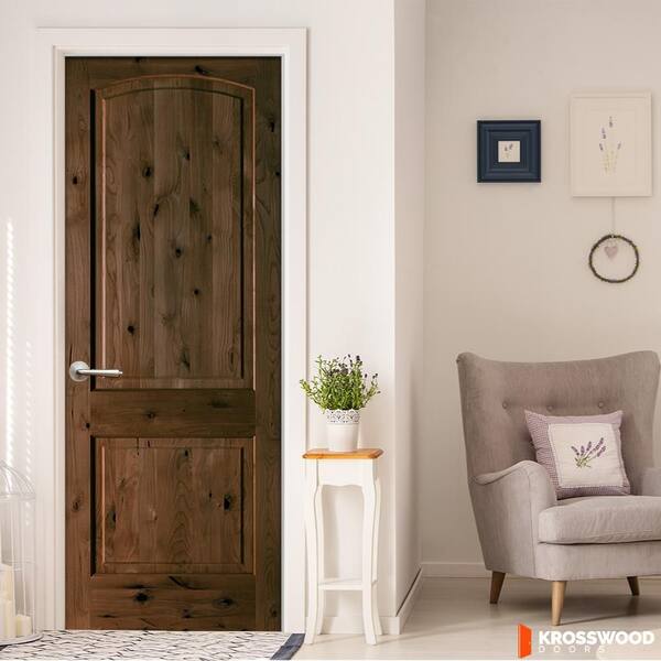 28 in. x 96 in. Rustic 2-Panel Arch Top Right-Hand Espresso Stain Knotty Alder Wood Single Prehung Interior Door