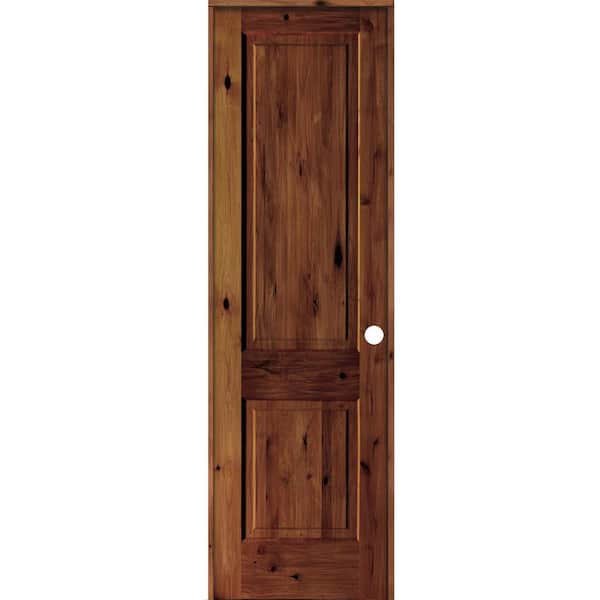 28 in. x 96 in. Rustic Knotty Alder 2-Panel Left Hand Red Chestnut Stain Wood Single Prehung Interior Door w/Square Top