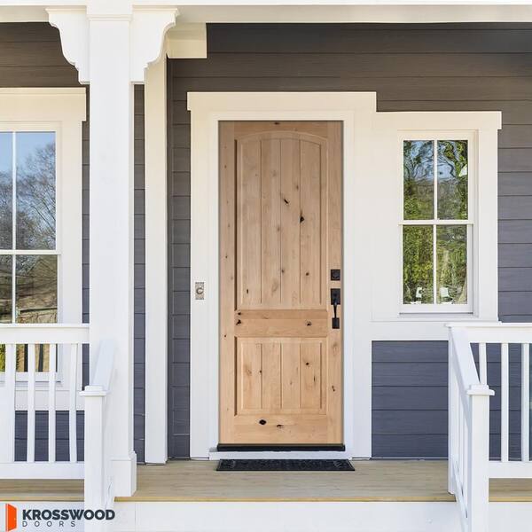 28 in. x 96 in. Rustic Knotty Alder 2-Panel Top Rail Arch V-Groove Unfinished Wood Front Door Slab
