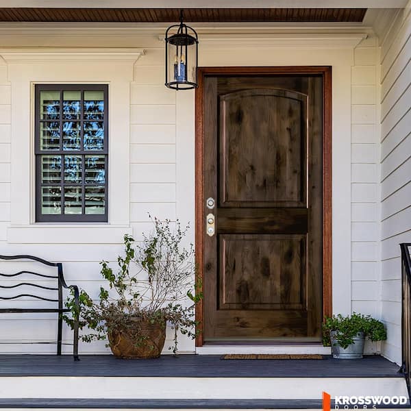 30 in. x 80 in. Knotty Alder 2 Panel Right-Hand/Inswing Black Stain Wood Prehung Front Door