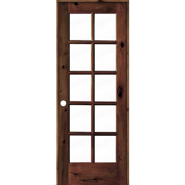 30 in. x 80 in. Knotty Alder Right-Handed 10-Lite Clear Glass Red Mahogany Stain Wood Single Prehung Interior Door