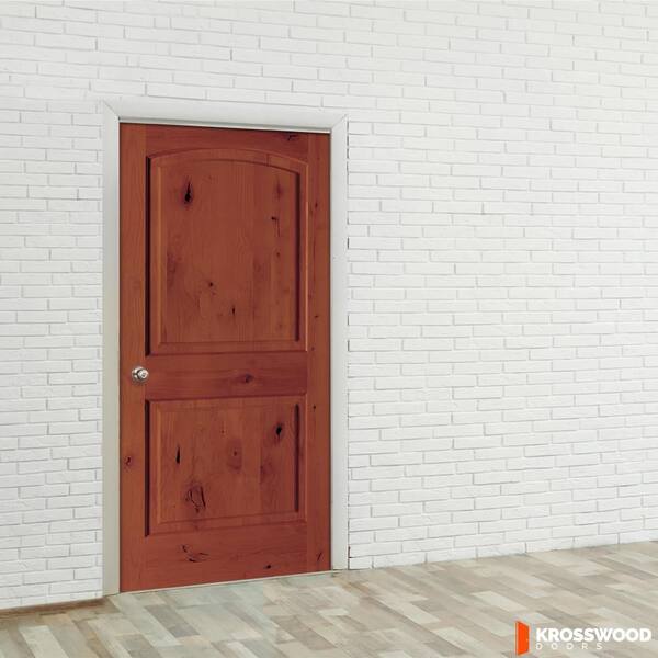 30 in. x 80 in. Rustic 2-Panel Arch Top Right-Hand Amaretto Stain Knotty Alder Wood Single Prehung Interior Door