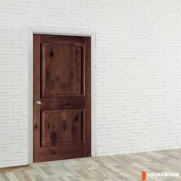 30 in. x 80 in. Rustic 2-Panel Arch Top Right-Hand Red Mahogany Stain Knotty Alder Wood Single Prehung Interior Door