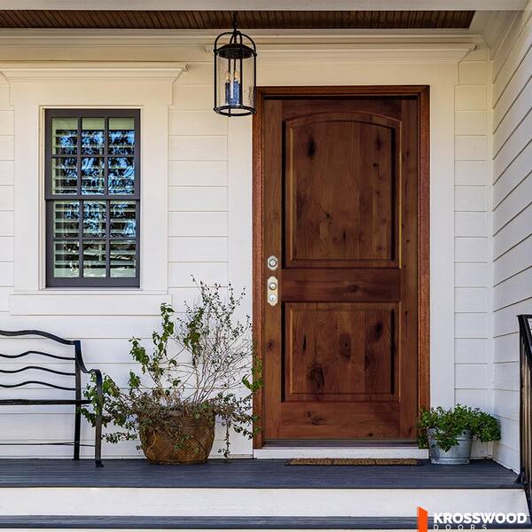 30 in. x 80 in. Rustic Knotty Alder Arch Top Red Chestnut Stain Right-Hand Inswing Wood Single Prehung Front Door