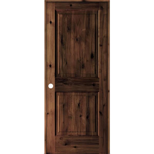 30 in. x 80 in. Rustic Knotty Alder Wood 2 Panel Right-Hand/Inswing Red Mahogany Stain Single Prehung Interior Door