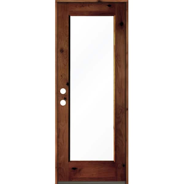 30 in. x 80 in. Rustic Knotty Alder Wood Clear Full-Lite Red Chestnut Stain Right Hand Inswing Single Prehung Front Door
