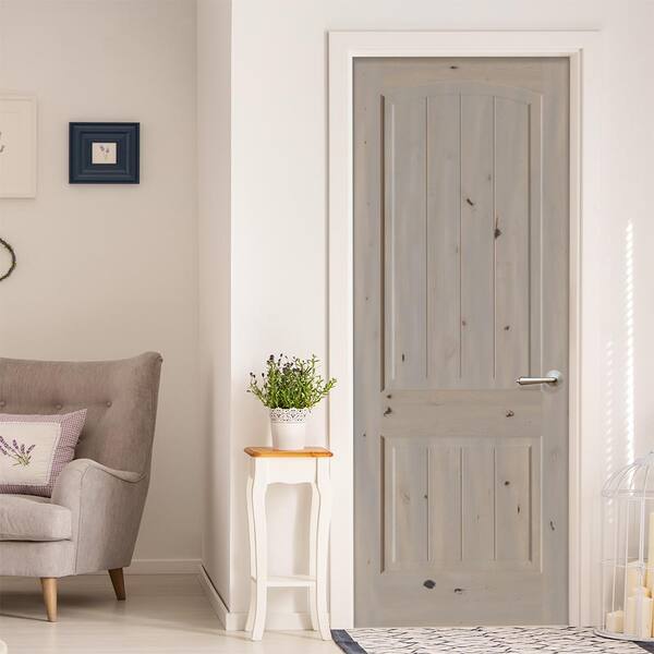 30 in. x 96 in. Knotty Alder 2-Panel Left-Hand Arch V-Groove Provincial Stain Solid Wood Single Prehung Interior Door