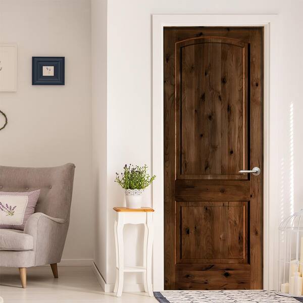 30 in. x 96 in. Knotty Alder 2-Panel Left-Handed Provincial Stain Wood Single Prehung Interior Door